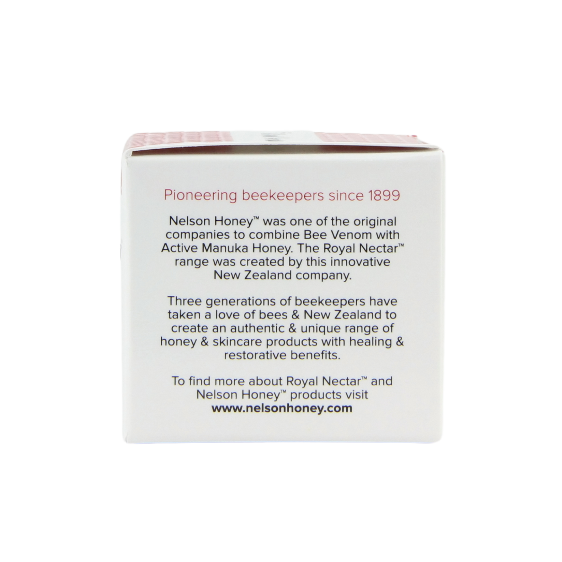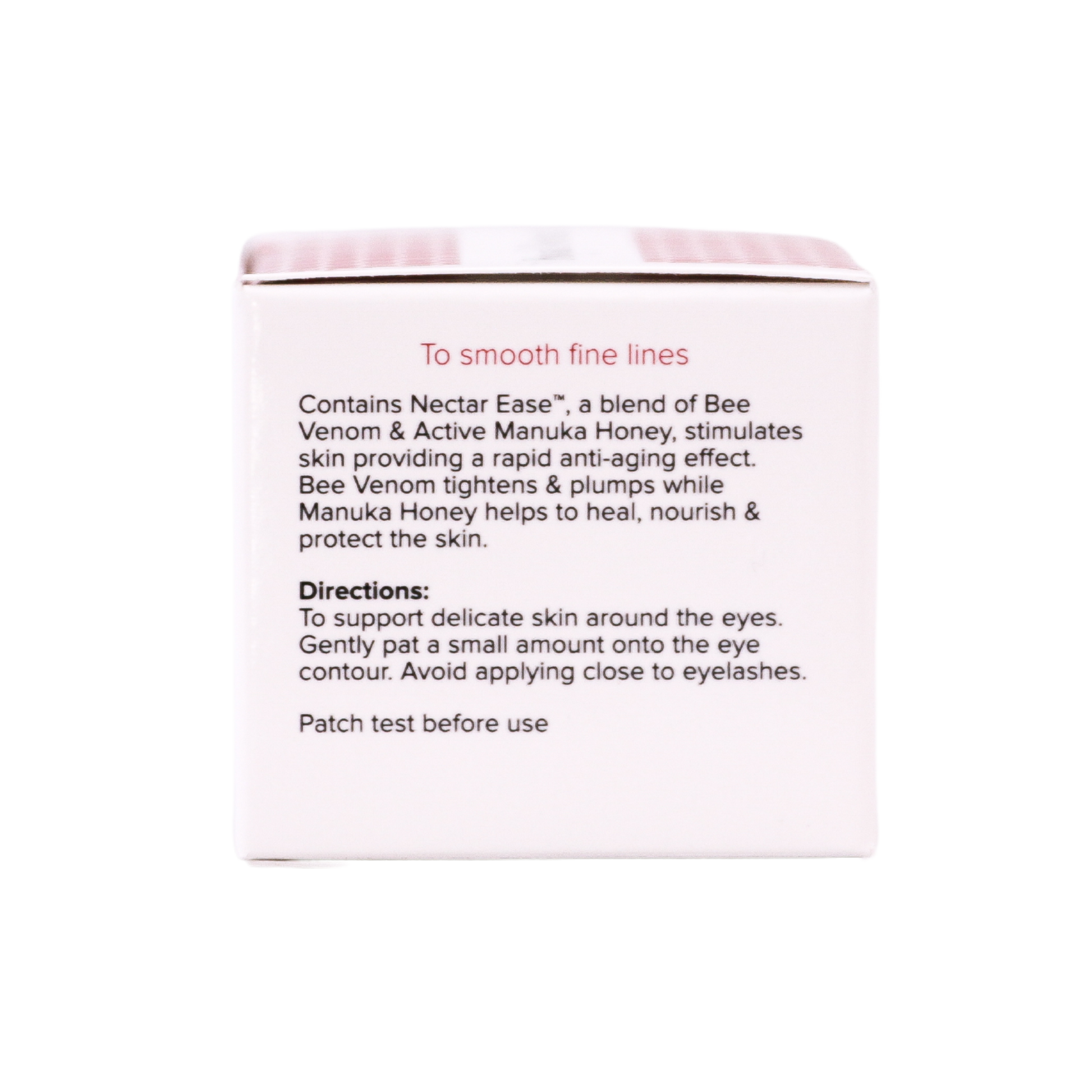 Royal Nectar Bee Venom Eye Cream is a soothing age-defying eye treatment formulated with a unique blend of New Zealand Manuka Honey, Bee Venom and Easyliance. The ingredients are carefully selected to sooth the delicate skin around the eyes. The unique combination of Bee Venom and Easyliance gently stimulates the facial muscles helping to firm and smooth the skin around the eye.